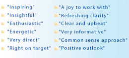 Typical feedback from clients' anonymously submitted forms responding to the request to provide their reactions to the presentation or discussion style of Linda Schmidt in coaching sessions: